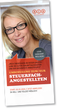 Sie interessieren sich für kaufmännische Inhalte, das Steuerrecht und gehen gerne mit Zahlen um. Kommunikationsfähigkeiten sind ebenfalls gefragt. Gerne klären wir in einem kostenlosen Beratungsgespräch Ihre persönlichen Voraussetzungen ab.
