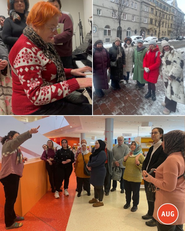 Viele der Frauen lesen sehr gerne und waren begeistert vom vielfältigen Angebot der Stadtbücherei: vom Leseraum über die Internetnutzung, über Bücher in der eigenen Sprache, Bücher zum Deutsch lernen, Kinderbücher, selbst Musikmachen, sich dort treffen zu können bis hin zu Ausleihe und Rückgabe.