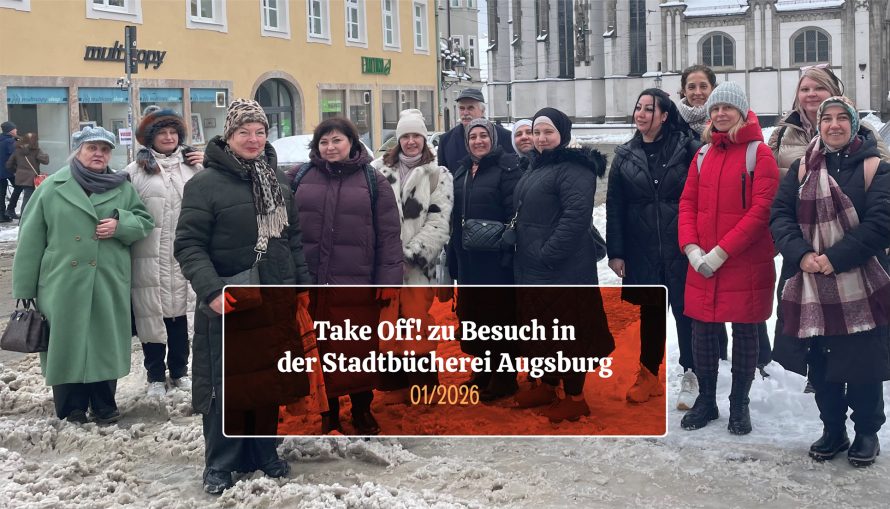 Mit unseren Teilnehmerinnen aus dem BIB-Sprachcafé bei Tante Emma durften wir im Projekt Take Off! die Stadtbücherei besuchen. Trotz (oder gerade wegen) des vielen Schnees waren alle hochmotiviert – und wir hatten jede Menge Spaß beim Spaziergang durch die verschneite Stadt und in der Stadtbücherei!